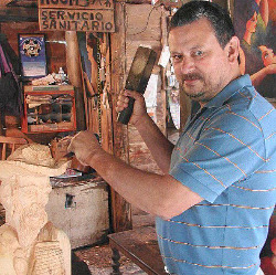 Su temática nacía de la tierra: campesinos, Cristos pueblerinos, mujeres embarazadas, niños, flores, perros. La madera de café era su favorita. “Mi trabajo es rústico”, decía, “a veces no lo pulo porque me gusta como queda”.
