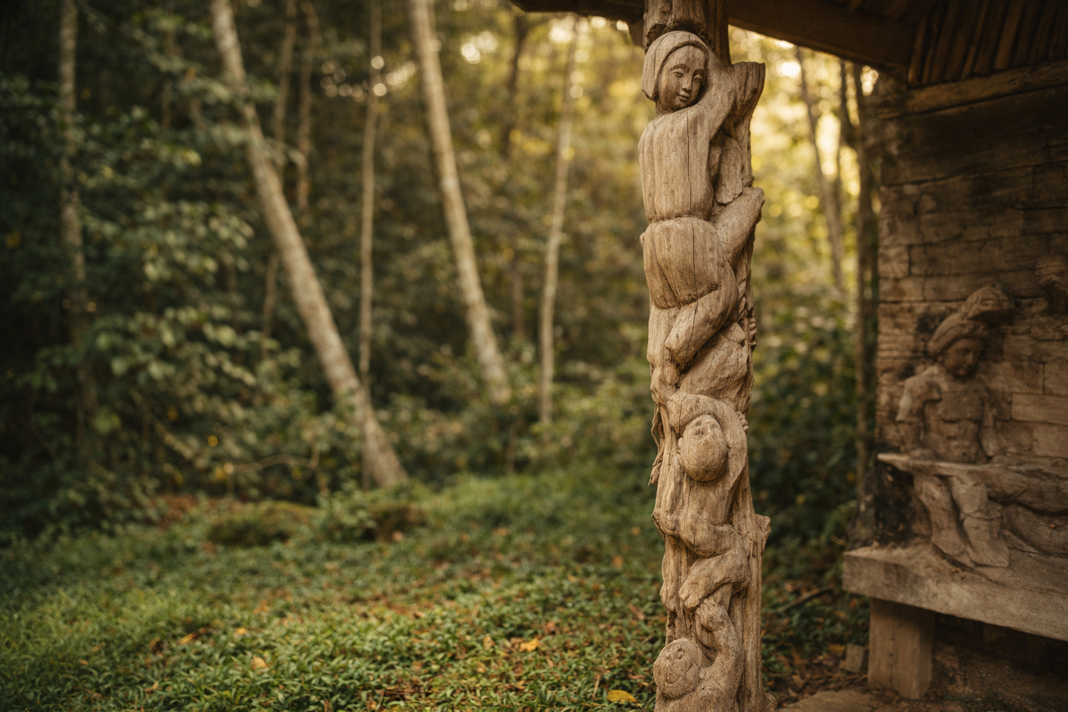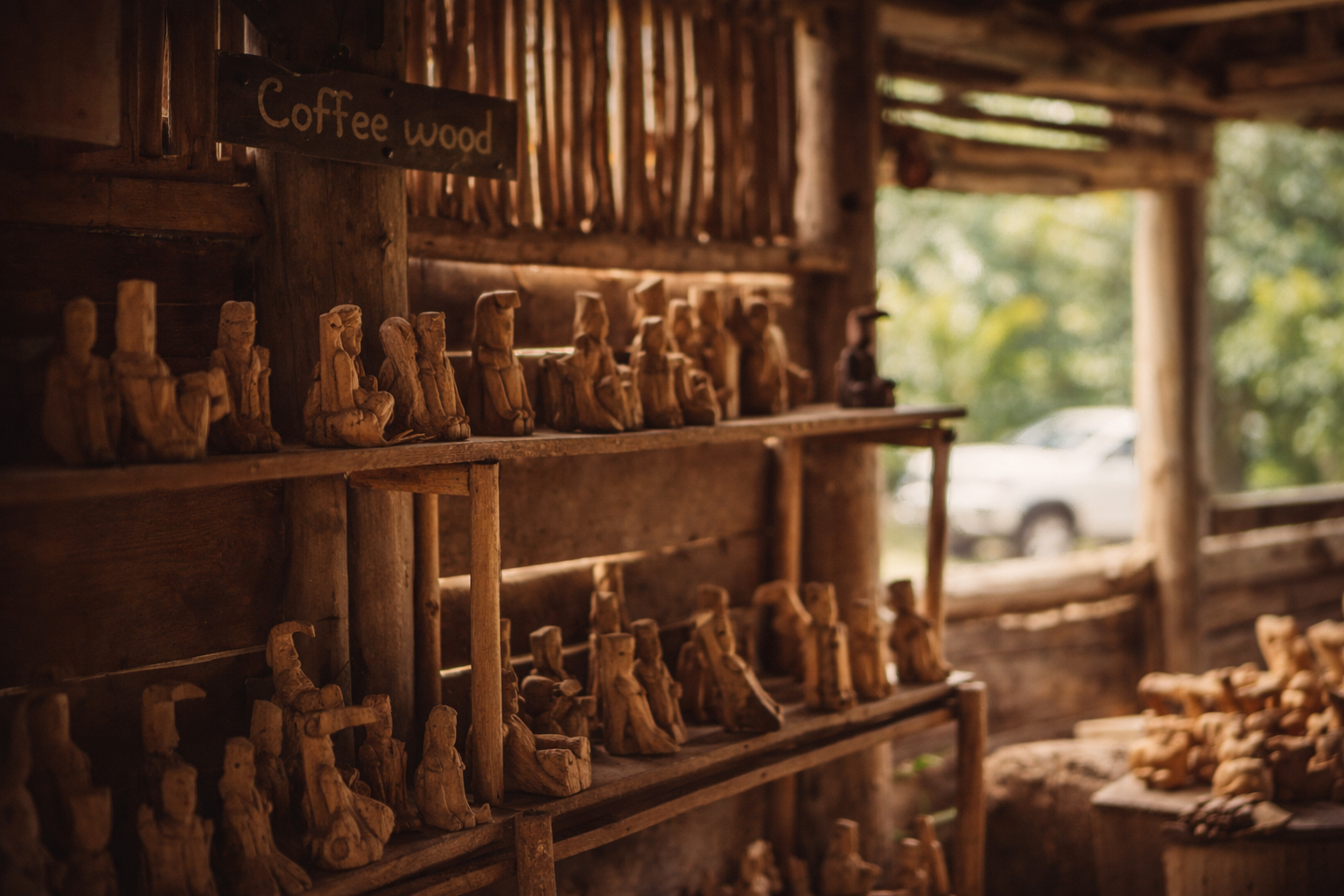 Cuando caminás entre las piezas, no solo observás figuras talladas. Sentís miradas. Gestos. Historias. Es como si cada escultura guardara un susurro del pasado campesino de Costa Rica.